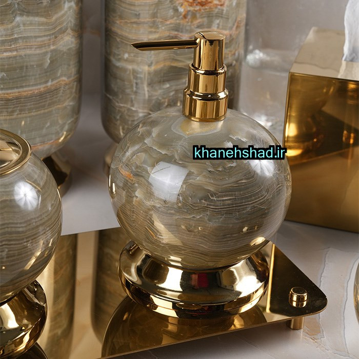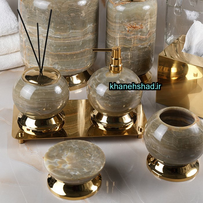 اگر بهدنبال یک ست سرویس بهداشتی لوکس و کاملاً متفاوت هستید که در اولین نگاه، فضای سرویس را تبدیل به یک محیط VIP و هتلپنجستارهای کند، این ست سنگی یکی از معدود گزینههای «واقعاً لاکچری» بازار ایران است. ترکیب سنگ طبیعی یشم (Jade Stone) با رگههای سبز یشمی و برنج طلایی صیقلی، یک اثر هنری واقعی خلق کرده که هر قطعهاش یادآور دکوراسیونهای سلطنتی و فضاهای بسیار سطحبالاست. ✨