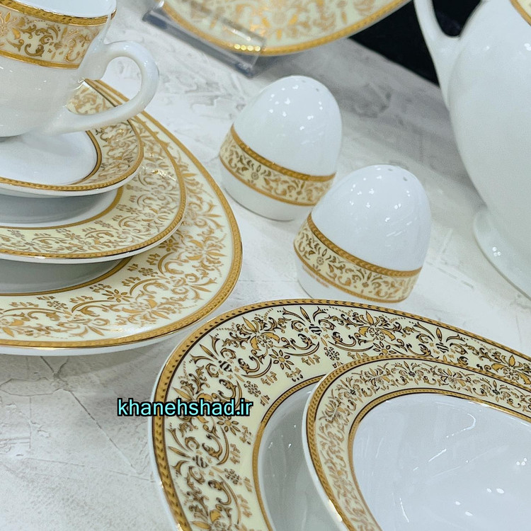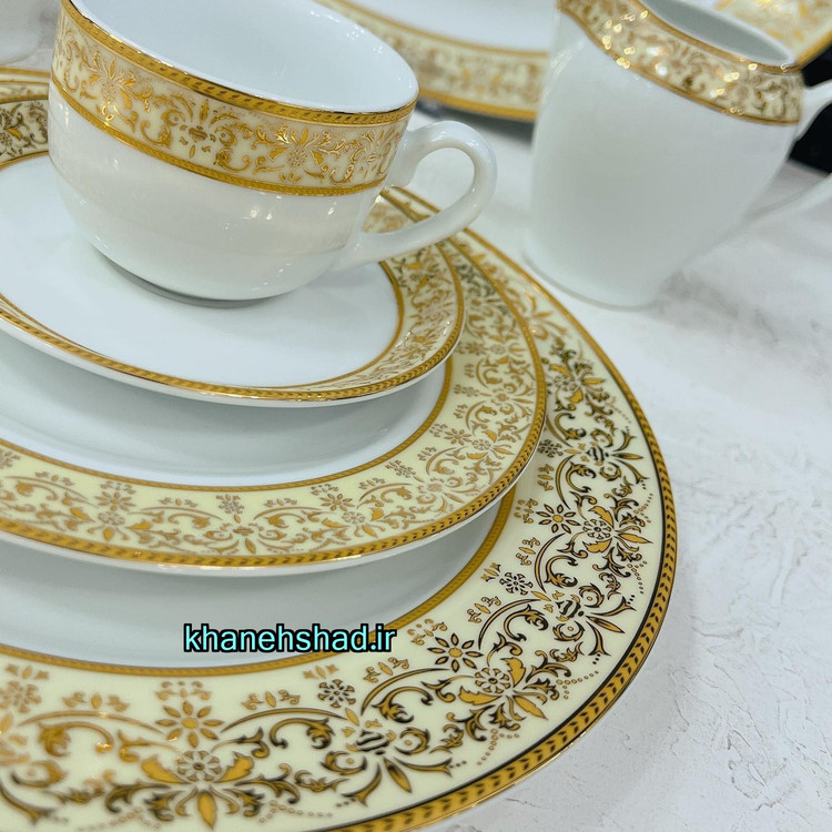 - فنجان چایخوری: ۱۲ عدد، با طراحی طلایی و بسیار شیک