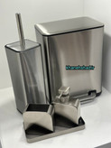 این ست سرویس بهداشتی تمام استیل با طراحی ساده و حرفهای، مناسب فضاهای مدرن، اداری و سرویسهای پرتردد است. بدنه از استیل باکیفیت (ضدزنگ و ضدتغییر رنگ) ساخته شده و سطح آنتیتاچ کمک میکند اثر انگشت و لک کمتر دیده شود. سطل استیل دارای سطل داخلی پلاستیکی جداشونده است که نظافت را بسیار آسان میکند و درب آن بهصورت نرم و بهداشتی باز و بسته میشود.