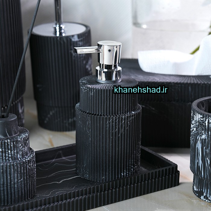 ست سرویس بهداشتی مشکیرنگی که در تصویر میبینید، از جنس کورین ساخته شده و در دسته ست سرویس بهداشتی لوکس، خاص و کاملاً متفاوت قرار میگیرد. رنگ مشکی مات همراه با رگههای سفید ماربل، این ست را به انتخابی عالی برای سرویسهای مدرن، لاکچری، هتلگونه و فضاهایی با نورپردازی حرفهای تبدیل کرده است.