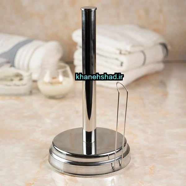 پایه رول دستمال کاغذی حوله ای رومیزی بلند استیل براق