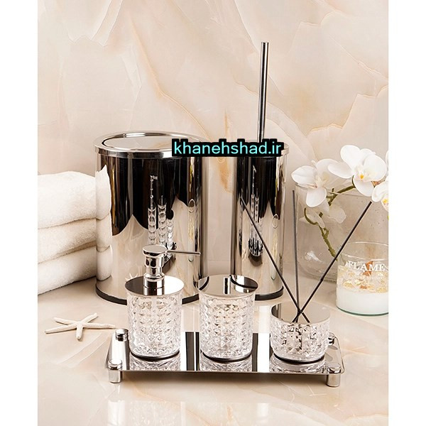 سطل زباله : 1 عدد - فرچه دستشویی : 1 عدد - - جامایعی : 1 عدد - جامسواکی : 1 عدد - سینی : 1 عدد - پنبه دون : 1 عدد