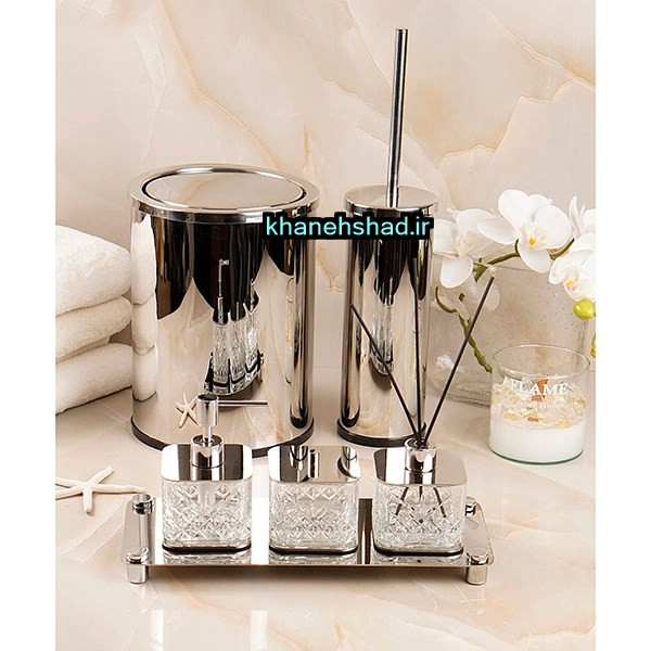 سطل زباله : 1 عدد - فرچه دستشویی : 1 عدد - - جامایعی : 1 عدد - جامسواکی : 1 عدد - سینی : 1 عدد - پنبه دون : 1 عدد - سینی : 1 عدد