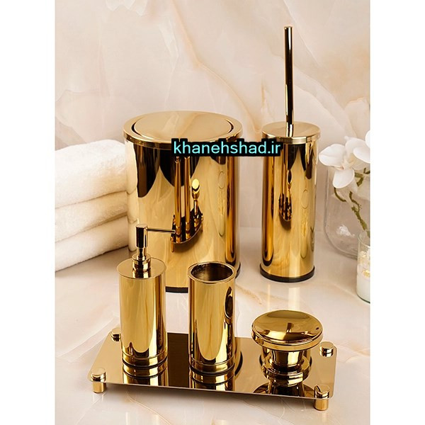سطل زباله : 1 عدد - فرچه دستشویی : 1 عدد - - جامایعی : 1 عدد - جامسواکی : 1 عدد - سینی : 1 عدد - جاصابونی : 1 عدد - جامسواکی : 1 عدد