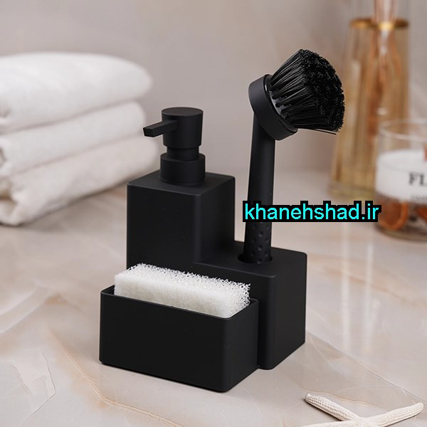 جامایع ظرفشویی چهارگوش با جااسکاچ و جا فرچه اکرولیک مشکی