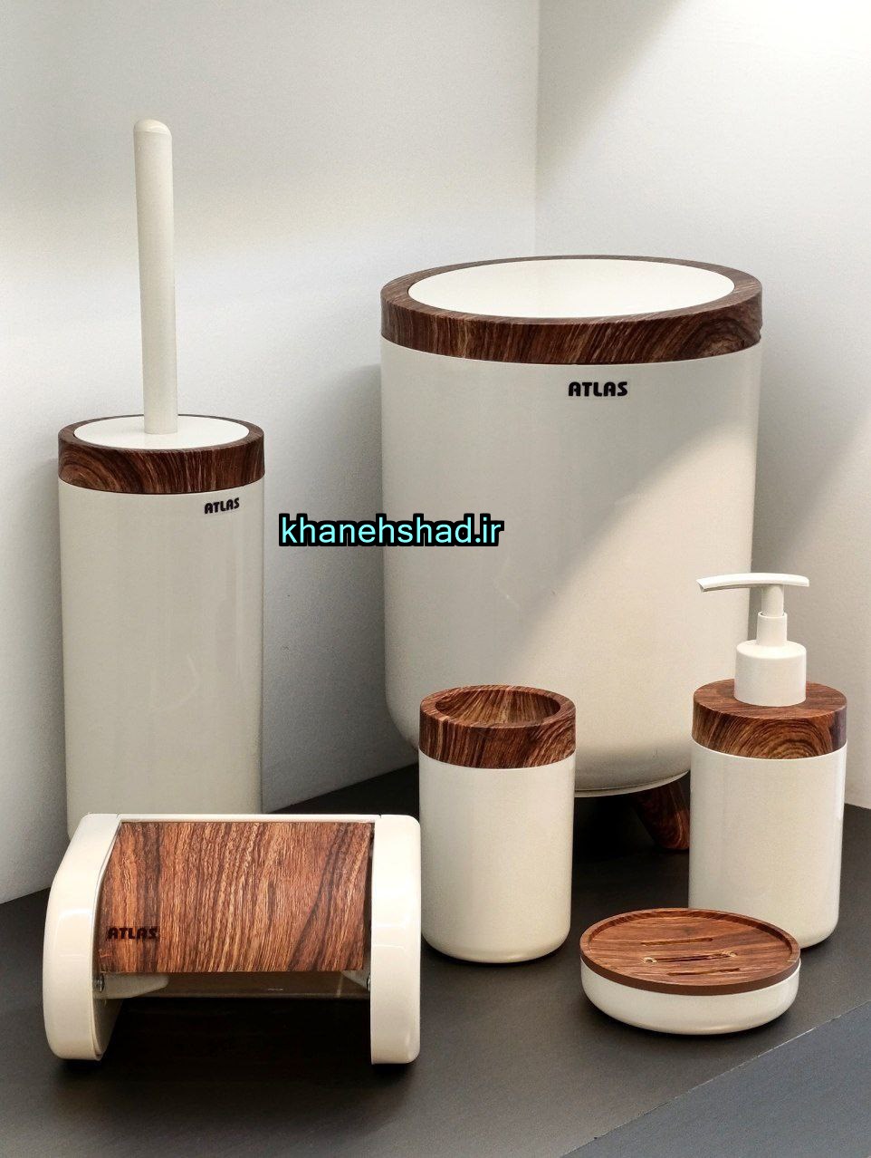 اگر به دنبال ست سرویس بهداشتی شیک و اقتصادی هستید، مدل اطلس (Atlas) میتواند انتخابی فوقالعاده برای شما باشد. این ست زیبا ساخت ایران است و از پلاستیک فشرده باکیفیت تولید شده که دوام و طول عمر بالایی دارد. طراحی مدرن آن با ترکیب رنگ سفید و طرح چوب، جلوهای طبیعی و دلنشین به فضای سرویس بهداشتی شما میبخشد.