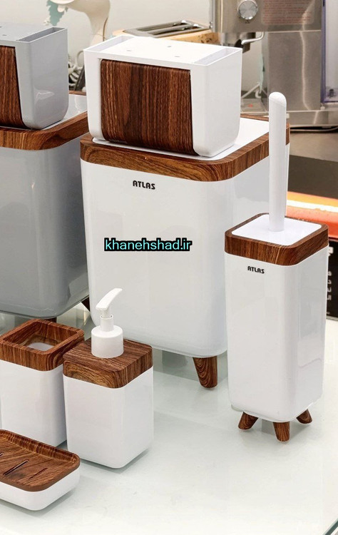 ست بهداشتی اطلس مربع سفید طرح چوب