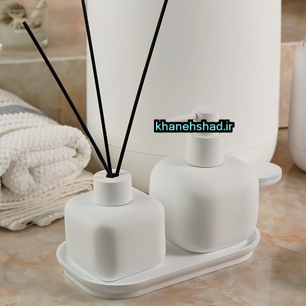 یکی از جذابترین بخشهای این ست، استند مخصوص خوشبوکننده است که بهزیبایی کنار جامایعی و جامسواکی قرار میگیرد و بوی مطبوعی در فضا پخش میکند. ✨
